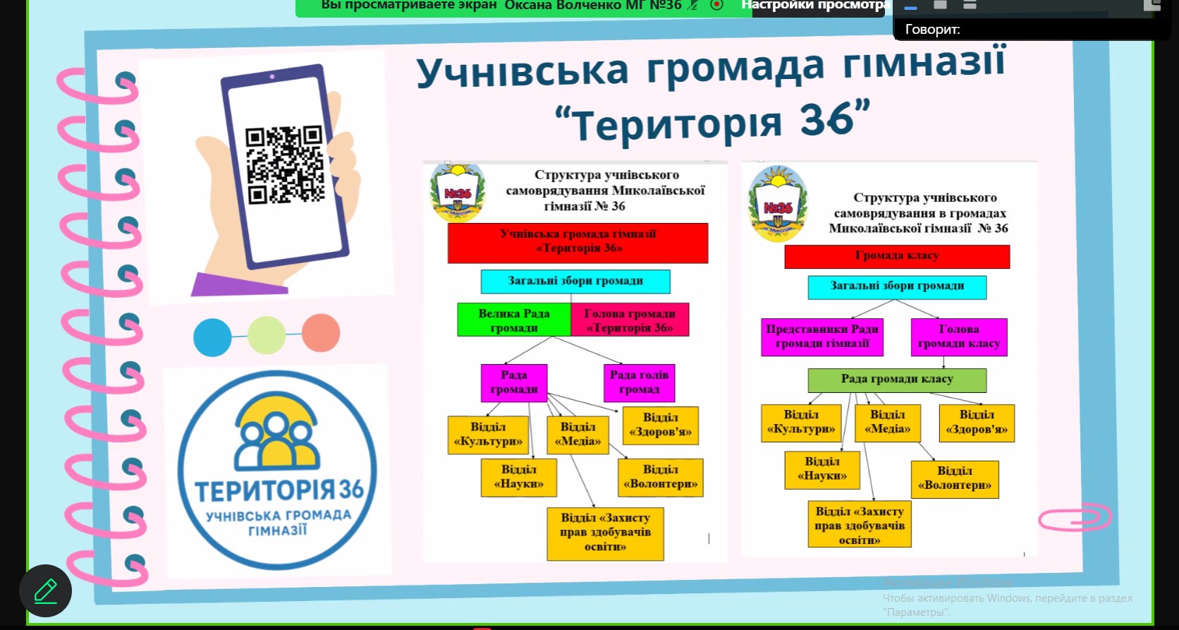 Оксана Волченко, педагог-організатор Миколаївської гімназії № 36 Миколаївської міської ради через призму «Самоврядування без фільтрів» представила практичний досвід і вагомі результати діяльності органу учнівського самоврядування гімназії.