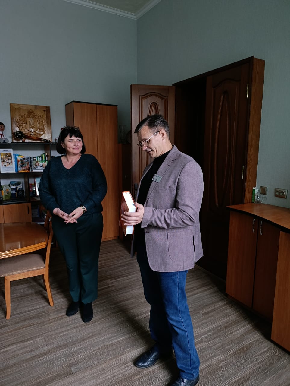 Директор департаменту освіти і науки Миколаївської обласної державної Веліховська Алла Борисівна, заступник директора-начальник управління дошкільної, загальної середньої, корекційної та позашкільної освіти Кравець Олена Леонідівна і начальник відділу закладів загальної середньої освіти обласного підпорядкування та інклюзивного навчання Демиденко Тетяна Анатоліївна у спілкуванні з в.о. директора КУ «Інклюзивно-ресурсного центр № 3» ММР Прасолом Дмитром Вікторовичем високо відзначили напрацювання колективу авторів і побажали подальших звершень на ниві реалізації інклюзивного навчання!