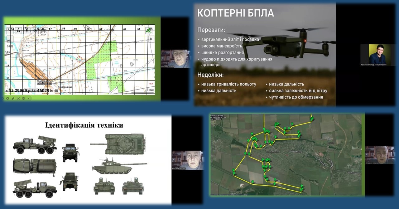 Спікерами Школи виступили Ярохін Олександр Володимирович, керівник гуртка МОЦНПВТК УМ, і Мінаков Володимир Андрійович, завідувач відділу патріотичного та національного виховання МОЦНПВТК УМ. У ході заняття учасники ознайомилися з загальною будовою та принципами роботи розвідувальних БПЛА, основами передачі інформації з використанням дронів, способами прийому та обробки отриманої інформації, а також базовими засадами орієнтування й виконання розвідувальних завдань. Доповідачі у своїх виступах наголосили на необхідності дотримання правил і вимог безпеки, відповідальності при застосуванні отриманих на занятті знань.