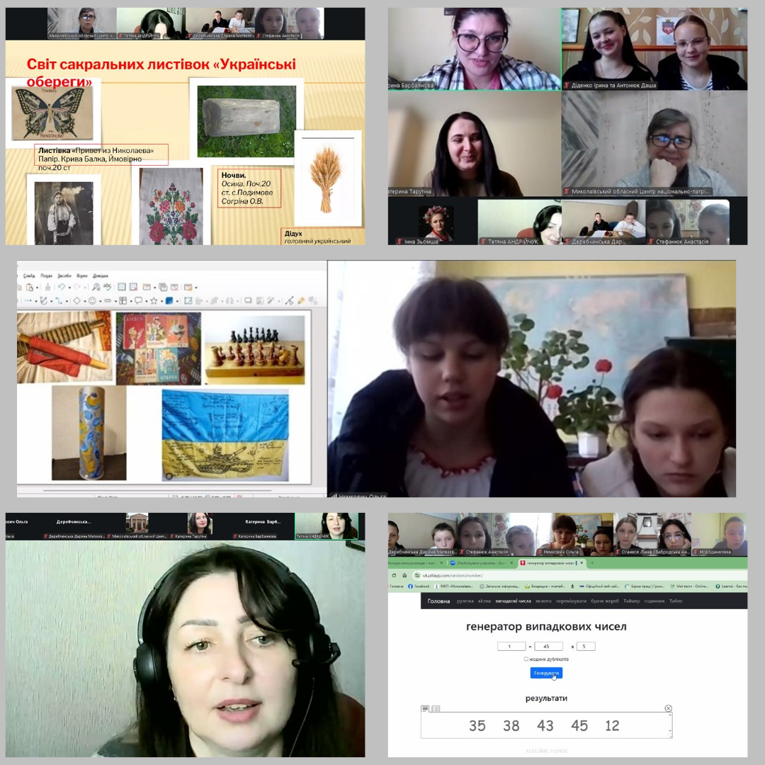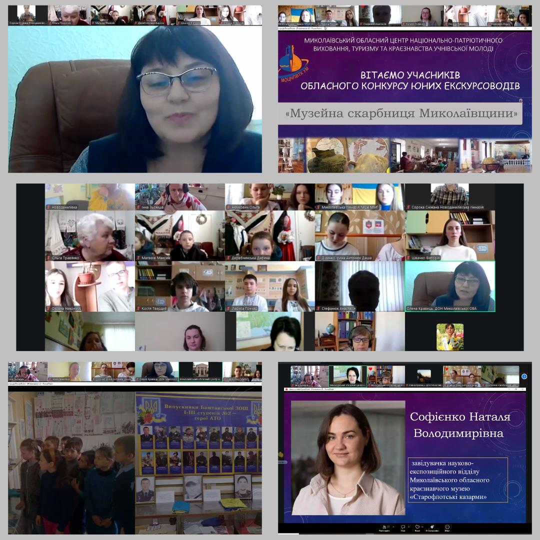Попри виклики часу, цифрові екрани на два березневі дні стали вікнами в історичне минуле нашого степового краю. Цього року в змаганні за звання кращих екскурсоводів Миколаївщини взяли участь представники 10 музеїв при закладах освіти області (Єланецького будинку творчості школярів Єланецької селищної ради; Щербанівського ліцею імені Героя Соціалістичної Праці Миколи Миколайовича Рябошапки Дорошівської сільської ради; Вільнозапорізького ліцею Вільнозапорізької сільської ради; Сирівської гімназії Врадіївської селищної ради; Новоданилівської гімназії Казанківської селищної ради; Новоодеського ліцею № 3 Новоодеської міської ради; Кривобалківського ліцею з початковою школою та гімназією Веснянської селищної ради; Павлівської гімназії з початковою школою та дошкільним підрозділом Снігурівської міської ради; Центру позашкільної роботи «Твій простір» Новобузької міської ради, Миколаївської гімназії № 24 Миколаївської міської ради).